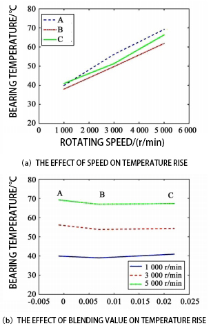 (2) When the speed of the tested part is between 0 ~ 6 000 R / min and the inner ring is in a certain matching state, the equilibrium temperature of the tested part first decreases and then increases with the increase of the outer ring clearance, and when the inner ring interference is small, the change of the outer ring clearance has a more significant effect on the temperature rise. When the outer ring fit state is constant, the balance temperature of the tested part increases with the increase of the inner ring interference